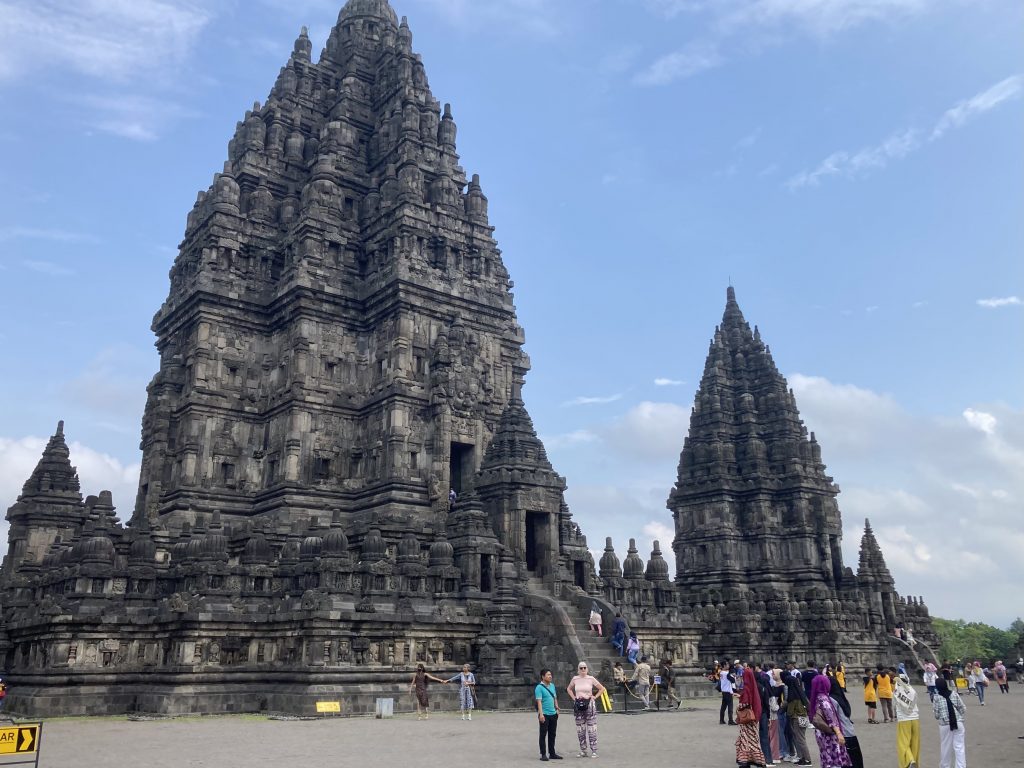 The temples were magnificent, the experience enhanced by being allowed to climb the steps and venture inside. The temples with their stories and stone work are reminiscent of Borobudur, which is a Buddhist temple, completed about the same time as work started on the temples here.