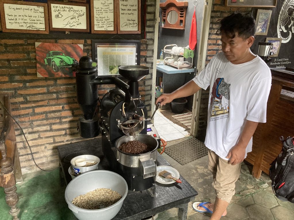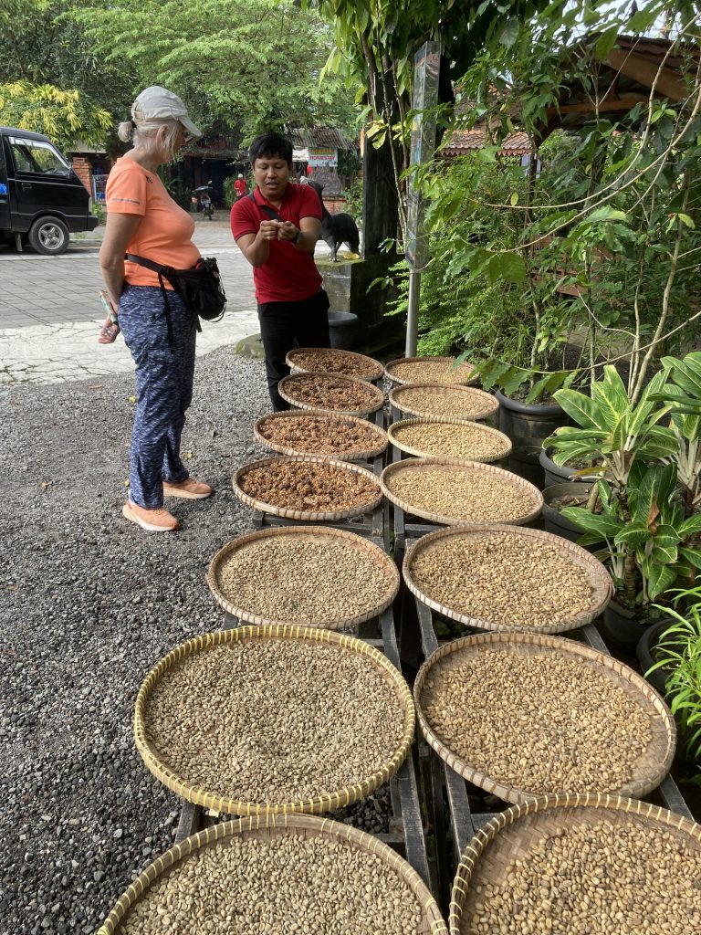 The MesaStile coffee plantation was our next destination, where we received a tour, saw all four coffee varieties grown on Java, and tasted more coffee. Our guide, Mr Yoyok, was keen to tell us about his visit from Michael Portillo, for his series on Asian train journeys, which we had watched. Our contribution to Mr Yoyok was to introduce him to Manhattan Transfer’s song – Java Jive, which he was really delighted to know, not having heard it before.