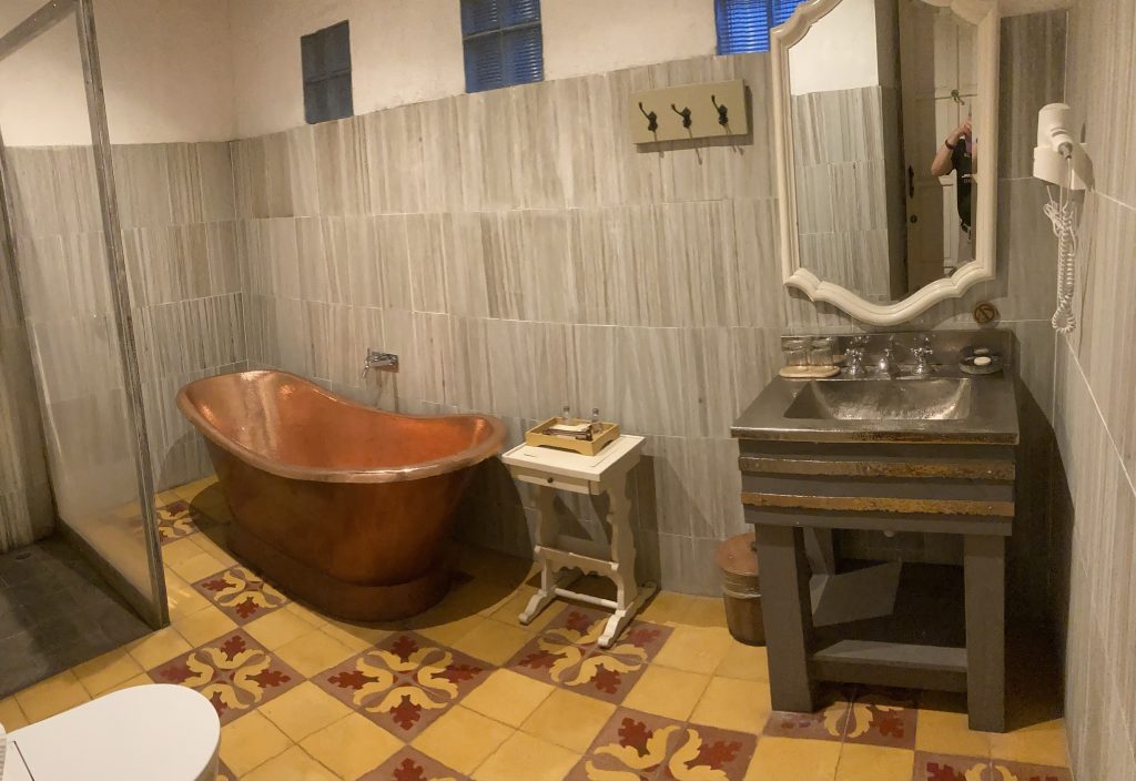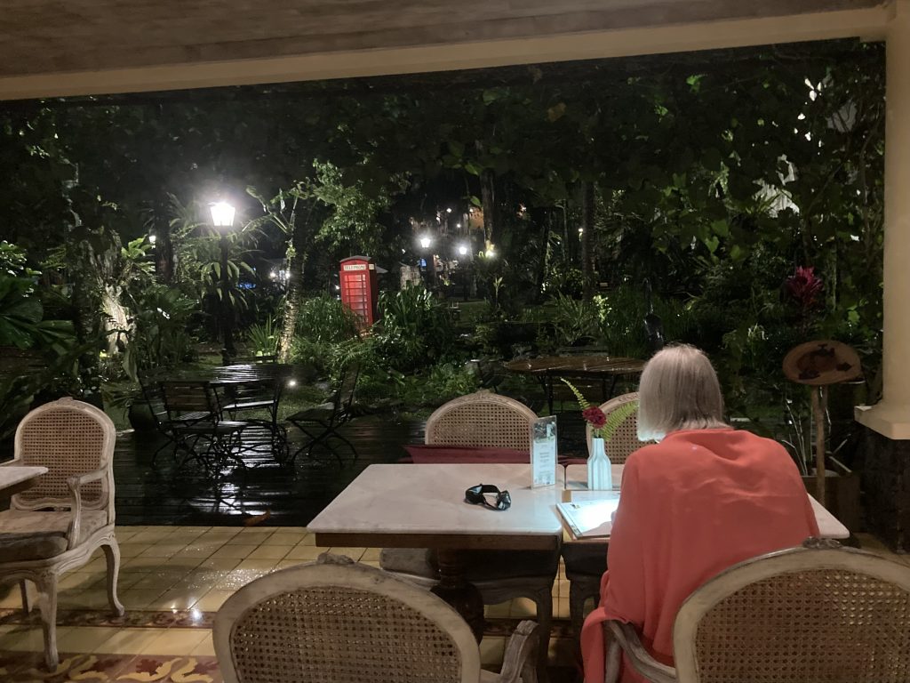 Our driver negotiated fog, torrential rain and heavy traffic all afternoon until we arrived at a splendiferous Dutch colonial hotel. It was complete with pool, excellent gym facilities, a spa and a red English telephone box! We would have loved to make use of the facilities, but we had an early start and it was already dark and still raining when we arrived. We were the only diners in the restaurant, accompanied by many frogs in the gardens!