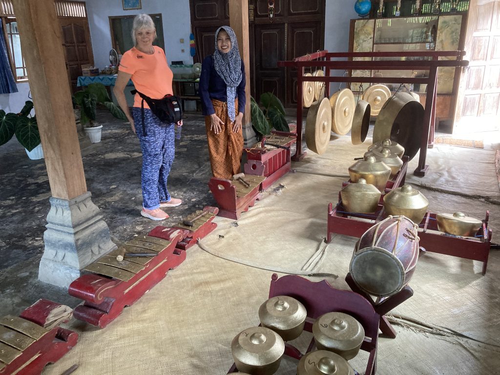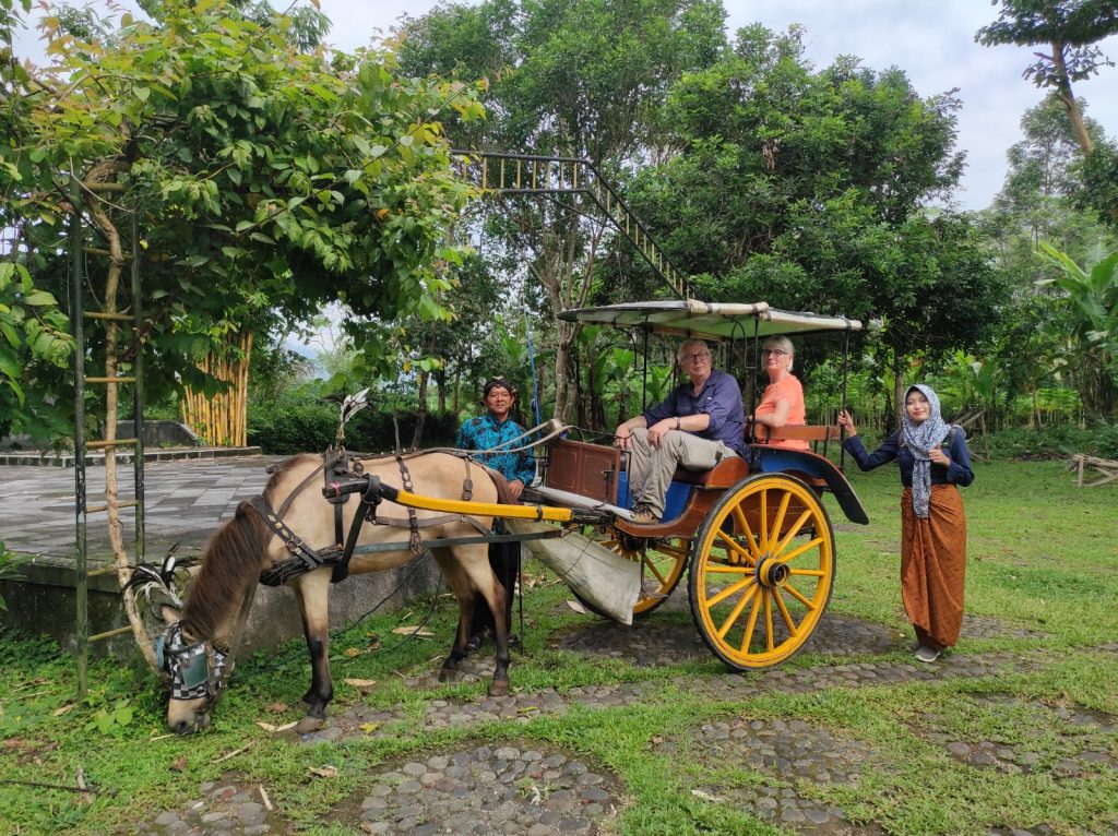 Next we had a tour of a small farming village, Candirejo, on a horse and cart. This was delightful, shown around by one of the young villagers, seeing the fruit and vegetables they grow for the market, the Tempe being deep-fried in garlic and getting to play the Gamelan. A real treat.