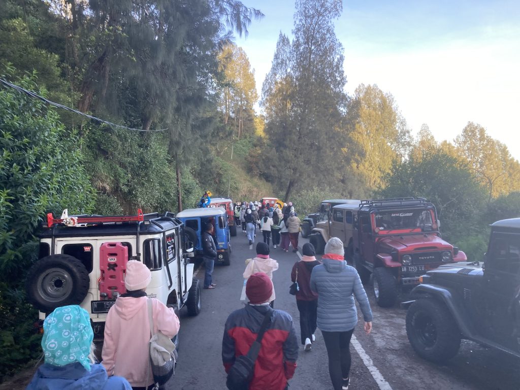 We found ourselves bumping along, on benches in the back of a jeep, pitch black, 3am. Other jeeps jostled on the road, gears crashing while racing up the narrow road up the side of the volcano, like a scene from Mad Max. There are three viewpoints, but only the early birds can reach the top one, as the road becomes blocked by parked jeeps.