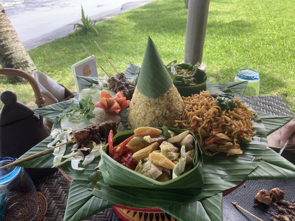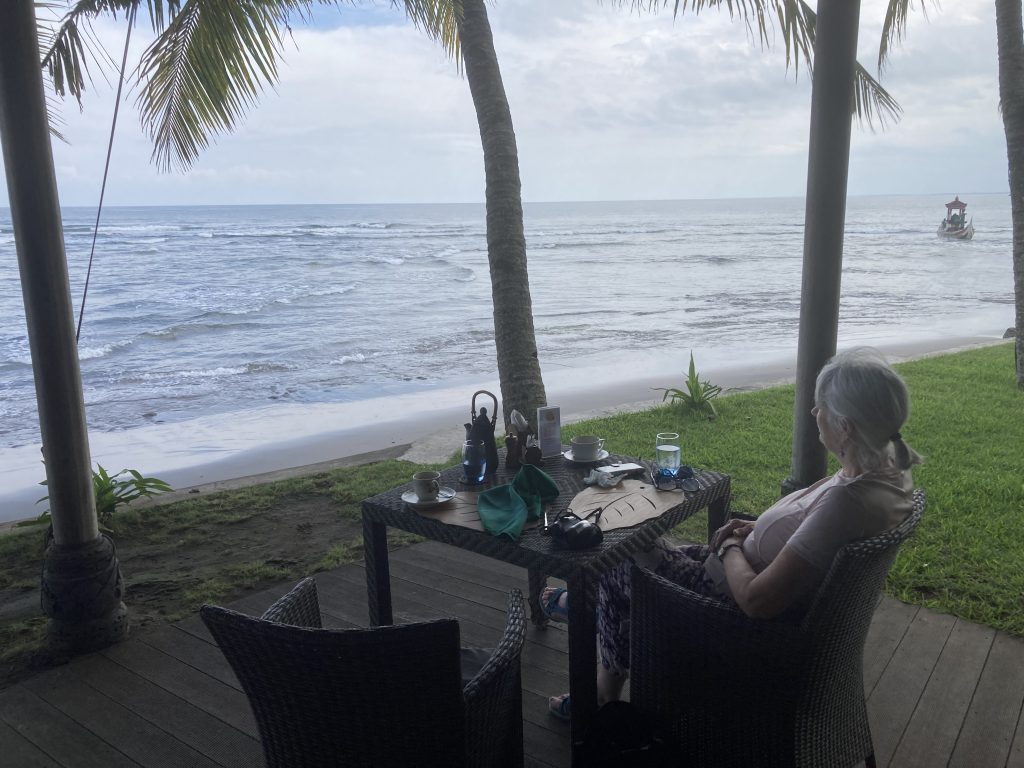 After a few hours, we stopped for coffee – ending up with being forced (by Roszi) to enjoy a large shared Rijstafel, sitting by the crashing ocean. We looked out over the sea, thinking that we were not so far from Australia.