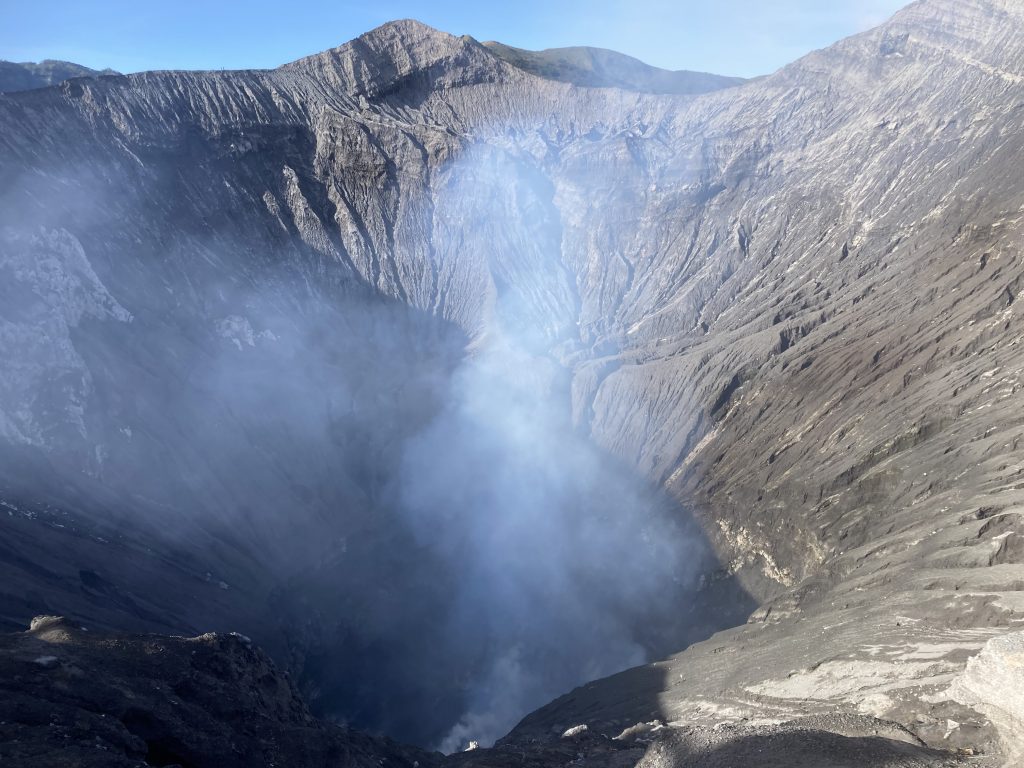 Peering down, the rising cloud and distressed caldera walls reminded us that we are but ants to the power of nature.