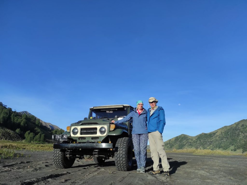 We were to witness the sun rise on Mounts Bromo and Batok in the caldera. We were blessed with a clear night sky, with the clearest full moon we’ve ever experienced, stars and a bright planet, Venus in the East.