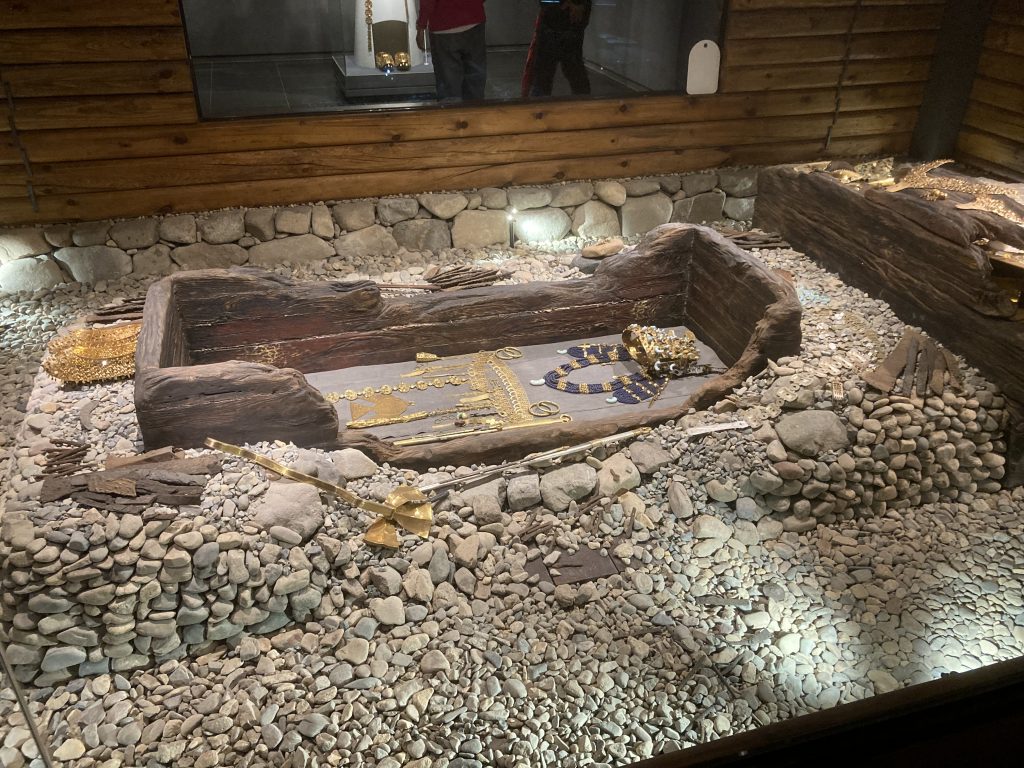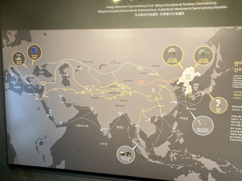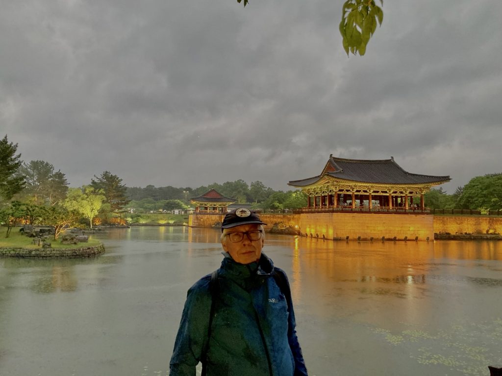 Then off to Daereungwon Park, to admire the burial mounds of Kings. The original gold ornaments buried in the one tomb, which is now open to the public, are truly remarkable. We were let loose to grab ‘street food’ dinner on a nearby touristic street. By good fortune, we found a ‘sit down’ restaurant where Lynne enjoyed a famous local dish, potato and cream cheese, served shaped like a pancake, the only item on the menu without garlic.