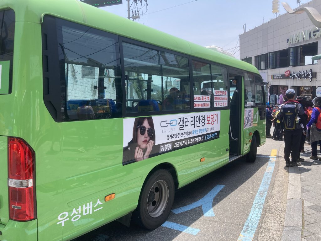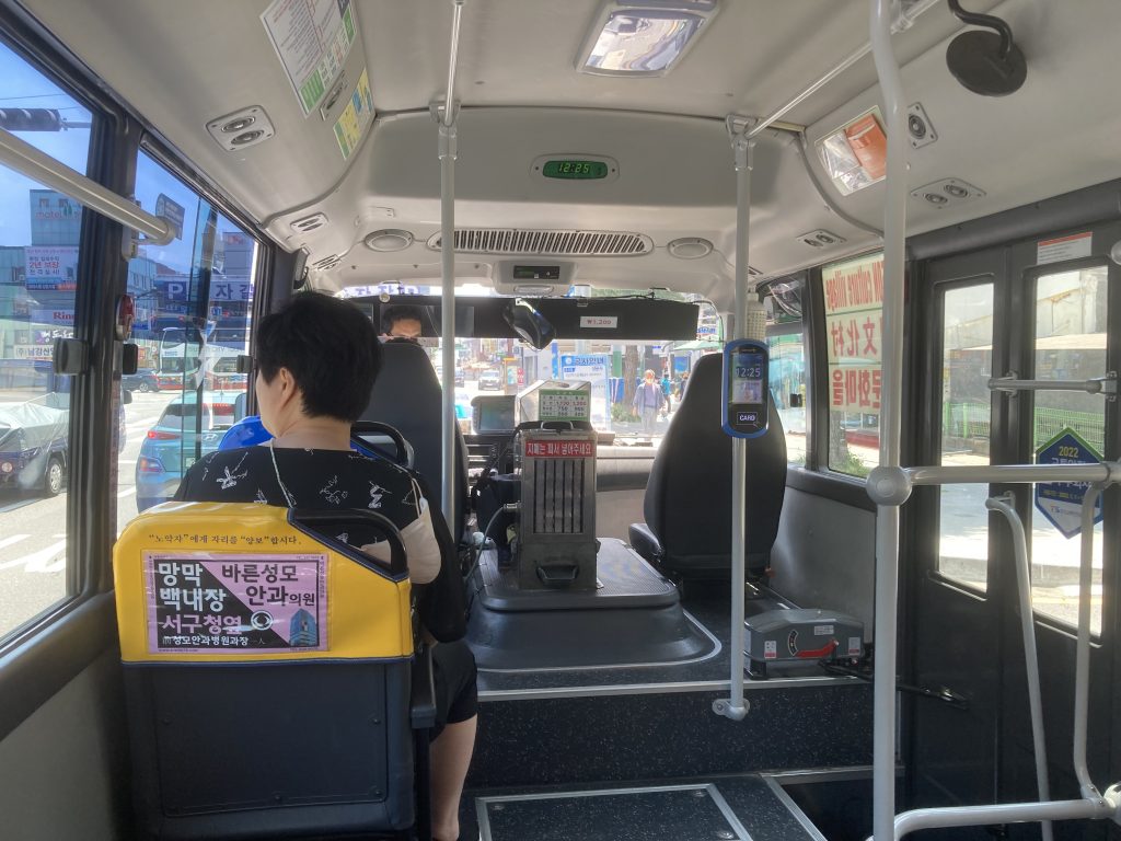 Our plan was to walk to the Gamcheon Cultural Village. We used the KakaoMap app and walked to a bus stop, just as a small bus arrived that we hopped on. Our luck was changing – right first time! It went exactly where we wanted it to.
