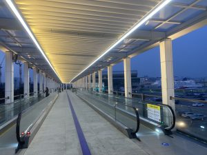 We were hoping to find one of the many eateries at the station on the way back, but garlic was proving problematic. Our last option – dinner on floor 21 of our hotel instead. No Korean food but fantastic views.