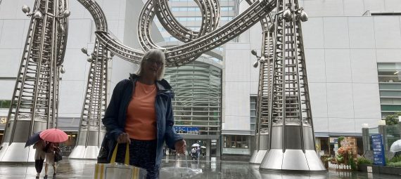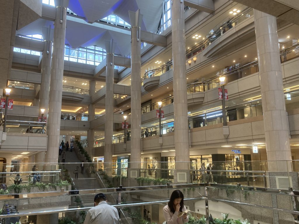 Between our hotel and the Landmark shopping mall, where we also went for dinner, were two venues for concerts, where youngsters were queueing, trying to keep out of the rain, early and late for shows. We arrived at the Pia Arena just as the hordes left, with their umbrellas. Imperfect timing…. And there they all were, the ‘Buddies’, queuing the following day, for another gig for the same Japanese idol girl group, Sakurazaka46!