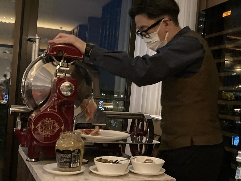 Dinner was in a rather swanky restaurant, Brasserie du Quai. After our Japanese banquet and breakfast in Hiroshima, we opted for something different. French cuisine is considered exotic here, but for us it felt like coming home, especially after two months in Asia. Peter revelled in the assiette du fromage – we have certainly missed cheese. AND we enjoyed a bottle of red wine served at the correct temperature.