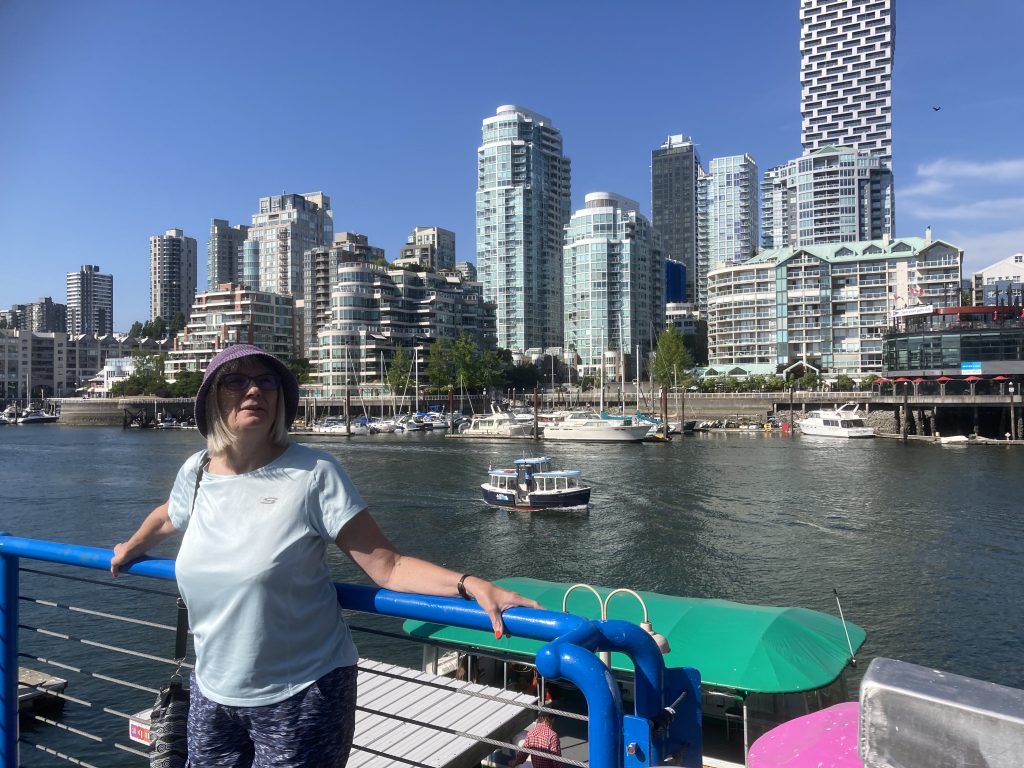 We then set off for a wander to lift Peter’s spirits, and found that the water bus to Granville Island was only just down the road. It was the cutest little boat imaginable! We hopped on and enjoyed a stroll round the food market and craft shops. We returned Downtown and enjoyed an early dinner of burger or chicken salad.