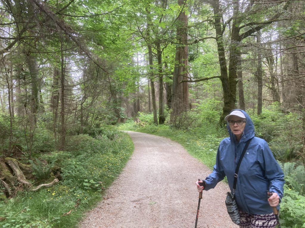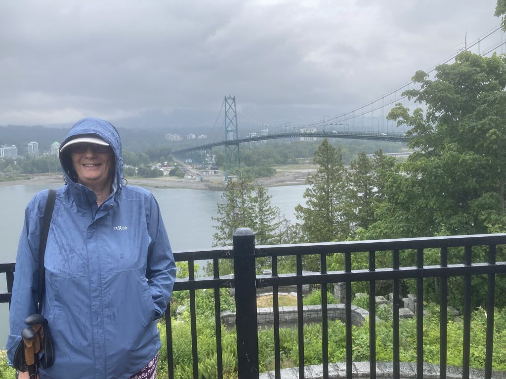 The weather had turned cooler, so we fetched our rain jackets before setting off to walk along the shore past English Beach to Stanley Park, a large deeply forested peninsula. We loved walking along the shore line, seeing eleven cargo ships at anchor and snow-peaked mountains in the background. We headed to one of the trails, through the tall pine forest to Prospect Point, where we enjoyed a welcome coffee. Wow – Boris Johnson had resigned while we were enjoying the peace of the park!