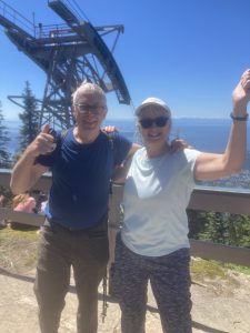 Peter had booked Brix & Mortar for dinner, which was set among lots of trendy eateries. The food was great, as was the local Pinot Blanc. Lynne’s starter was small but her dessert huge, so we determined to climb Grouse Mountain in the morning to shed some surplus calories.