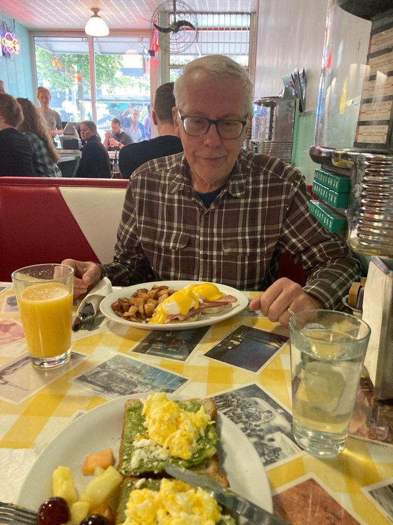 Next morning saw us stumble upon a trendy traditional diner for breakfast. Established in 1934, it still housed a jukebox with selection (not working) at each table and a soda stream from the 1950s, with the decor true to the original. There was soon a queue waiting to get a table, so we were lucky.