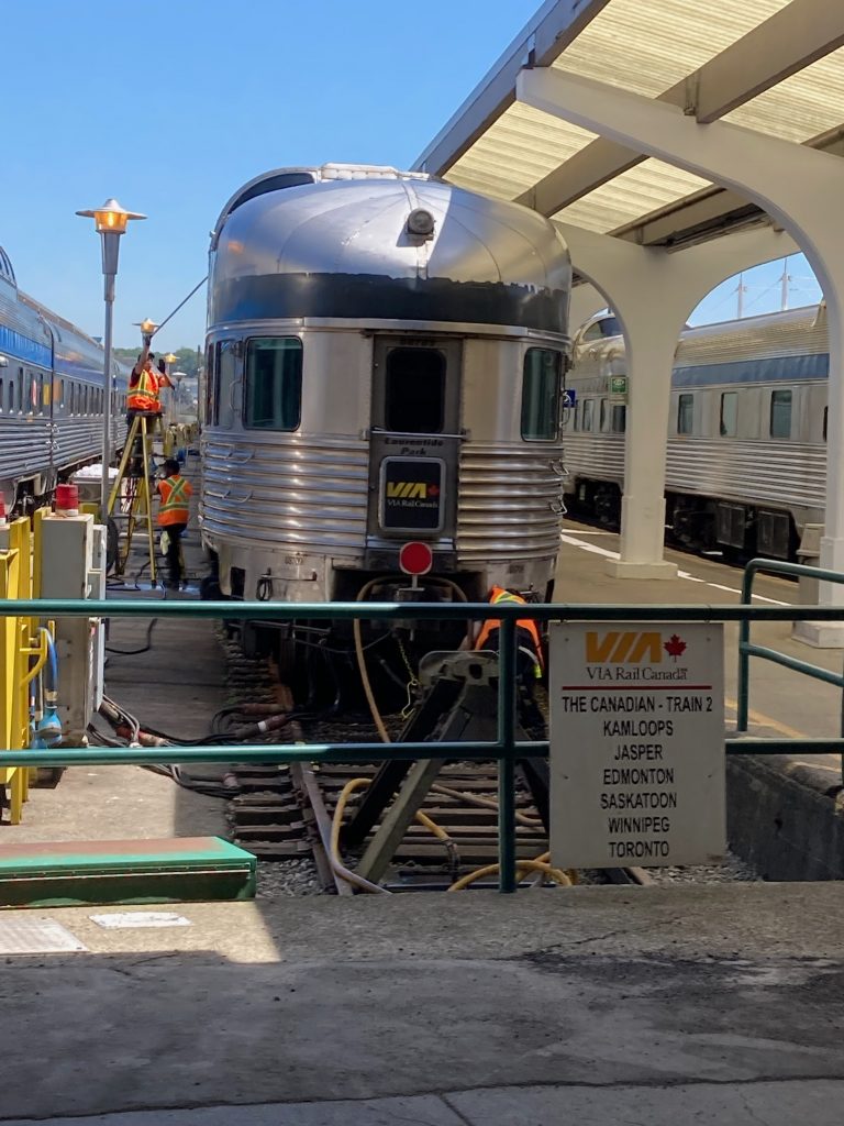 The rail staff were encouraging passengers to consider changing their booking. The next train was in 4 days. We waited hoping that it would at least make it to Jasper (as we didn’t have a Plan B). Ultimately we boarded and we learned later that the train was going to attempt to make it across Canada, while the Trans-Canada Highway itself was closed.