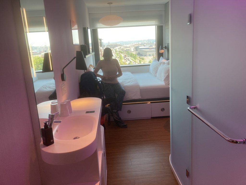 We had a modern snazzy hotel near the waterfront by Pioneer Square. We stopped off for a coffee en route to the hotel, to ease the transportation of heavy rucksacks. We were surprised to see the number of busy wine bars so early on a weekend. Later, when searching for a light dinner, we discovered that wine bars shut at 8pm.