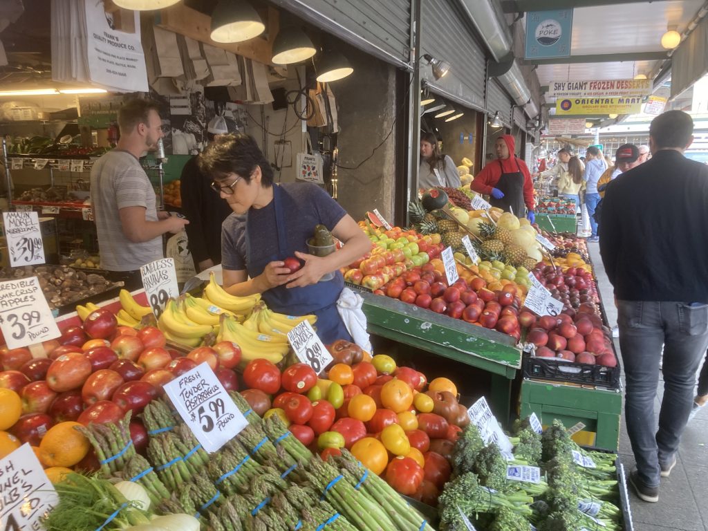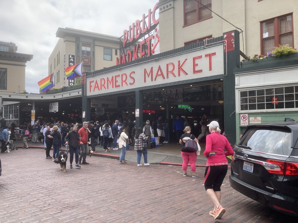 Our only full day in Seattle was a mixture of highs and lows. We tried our first run for a while, along the waterfront. However, the strain of carrying the rucksack proved too much for a run so soon after, for Lynne, so we ended up walking to Pike’s Market. Here, we enjoyed pancakes for breakfast – more accurately, one humongous pancake shared by the two of us. Pike’s Market was heaving, reminding us of a mixture of Camden and Borough markets on a weekend.