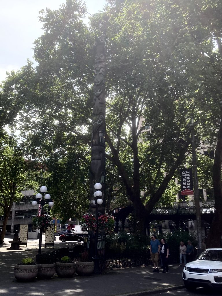 On the positive side, we loved our walk in the Pioneer Square area, saw the famous wrought-iron pergola and totem pole. Smith Tower, the first skyscraper west of the Mississippi River was built in 1914, with thirty eight storeys, and a sloping roof. We visited the Waterfalls Gardens, and made it to The Triple Door Live Venue, where we were the first to enjoy a drink, as it opened its doors, away from the hullabaloo outside.