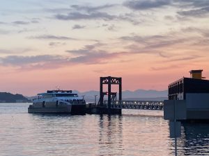 We found a bar, where we had some imaginative sharing plates, with excellent cheese, served at the right temperature. Their happy hour was from 3-6pm! Sitting outdoors was so reminiscent of London – the first time since we had left, over 3 months ago. Later, we enjoyed a short walk along the waterfront, seeing the mountains in the distance, lit by sunset.