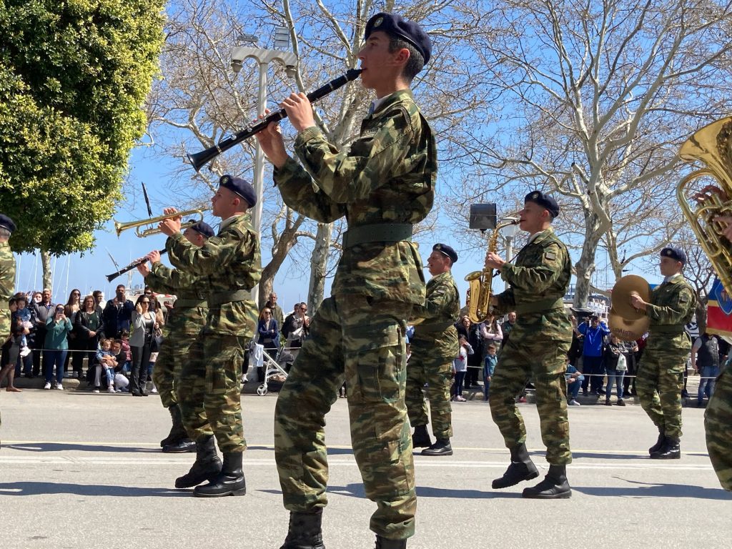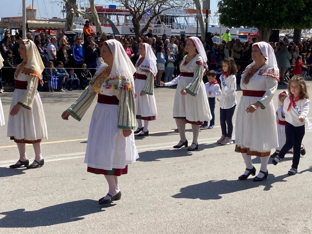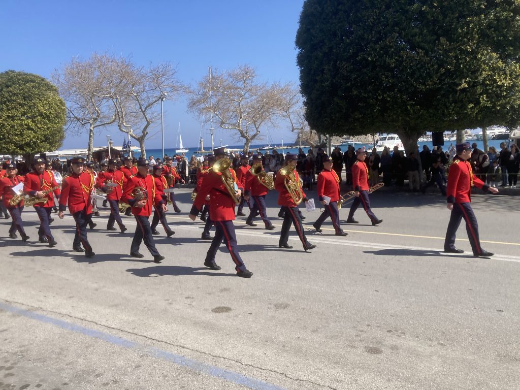 Saturday was also a Public Holiday, so we chose to watch the Greek Independence parade on the waterfront, the first for 3 years, on account of the pandemic. The parade was worth seeing and very well-attended with crowds lining the parade route, children waving Greek flags. Groups had come from many of the smaller islands and we saw many costumes, all to the sound of rousing marching rhythms, after the playing of the Greek national anthem. It seemed to us to be an important act of civil identity, as the nation was founded not so very long ago, is widely dispersed among mainland and many islands, and lived through internal division and conflict during and after the Second World War, and feels uncomfortably close to its big neighbour, clearly visible across the water.
