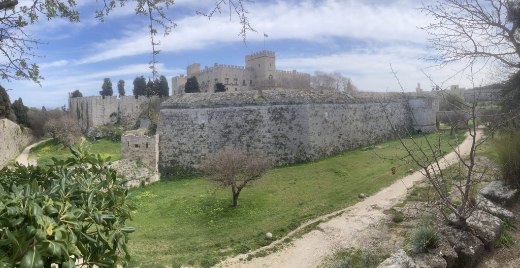 Rhodes is the fourth largest Greek island, situated on the intersection of two Mediterranean Sea routes and only 18km south west of Turkey. Unsurprising then that it has required extensive fortifications over the ages. Many civilisations have left their mark from Classical times, the Crusaders, the Italians (during the Second World War, including bombings by the RAF) which are manifested in the Medieval City, with ramparts, moat, narrow cobbled streets, castle, mosques, minarets, churches and synagogues.