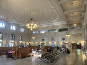 Sunday morning saw us stop off, en route to Seattle King Street Station, at the same coffee shop we had visited on the way to the hotel, where we grabbed a coffee and large croissant for breakfast. We checked in our rucksacks and waited in the lovely old station building. Our train was due to depart at 9.50am and arrive in Emeryville for a connecting bus to San Francisco early the following morning.