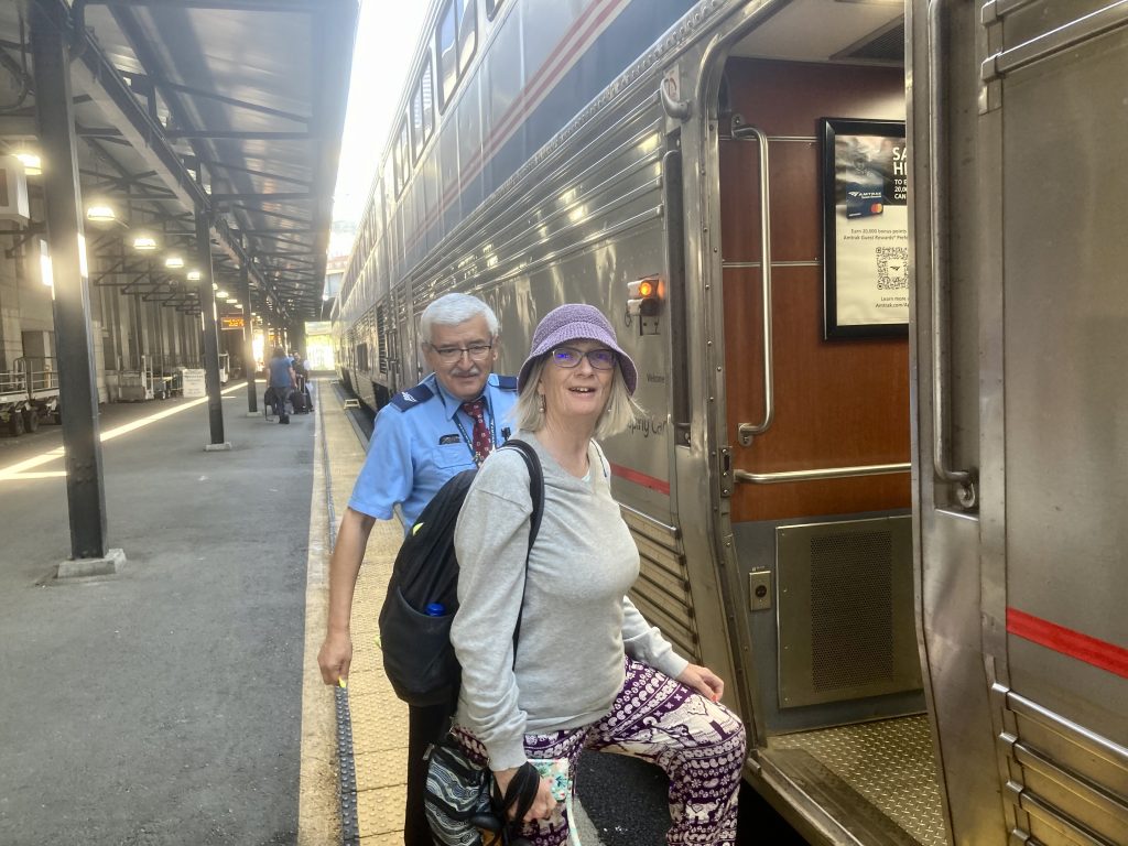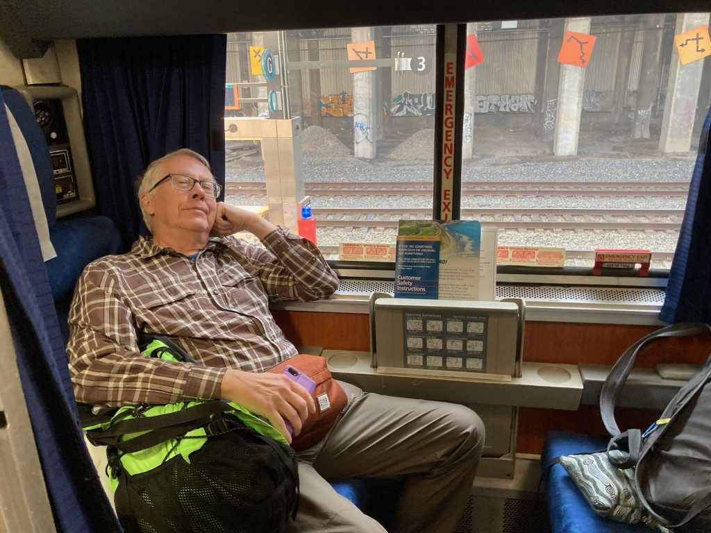 Although the train seemed to be running late before we retired for the night, the train caught up and arrived at Emeryville exactly on time. Sleep was disturbed, but that was self-inflicted as Lynne woke up with a start, realising that we had left mouse poison out at La Coste and we didn’t want Disco to be the first to find it. So she was sending Chris messages as to where the poison might be hidden in the middle of our night, waking up Peter in the process.