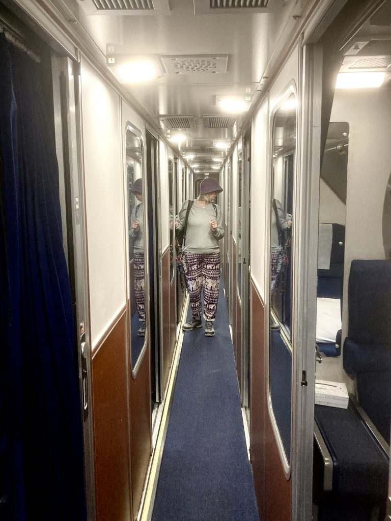We were pleased with the sleeping arrangements, despite Lynne bumping her head on the upper bunk, before it was lowered. This was good news as we have another few sleeper journeys to take on our trip. The toilets could have been cleaner, but the food was better than expected – the evening meal even included a glass of wine!