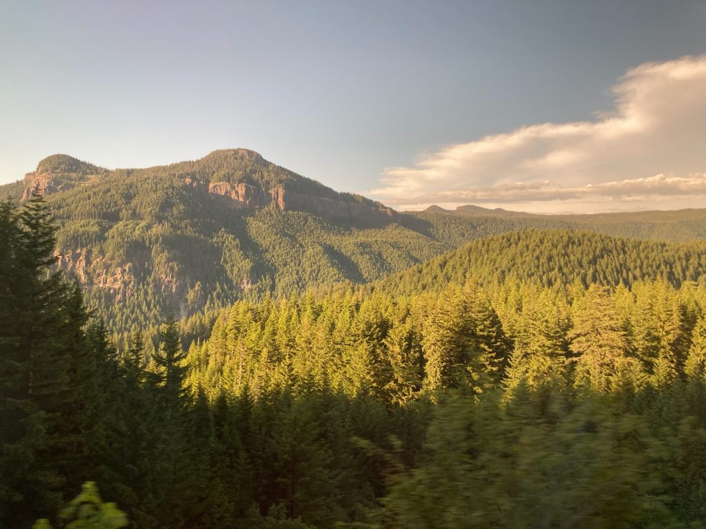 We parked ourselves in the observation car to hear one of the volunteer commentators on the train to Portland, pointing out highlights, with a bit of history. However, there was too much information, and we returned to the peace of our little room.