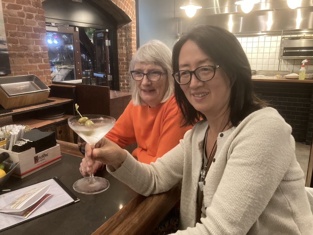 We enjoyed/endured a chilly, windy walk in the dark of Fort Mason Great Meadow Park before a late nightcap for the four of us at the hotel.