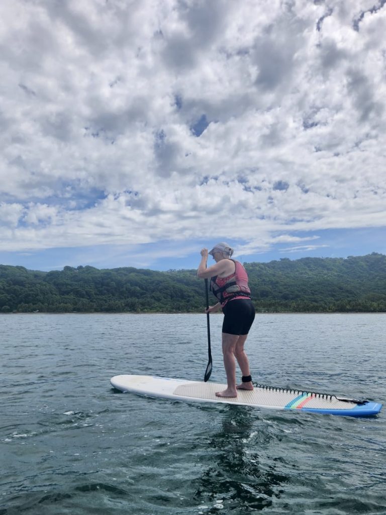 Neither of us had done this before, so there was some trepidation as we were briefed on the beach. The bay was calm, but was definitely not still. It took a while and a few toppling offs before getting the hang of just standing up.