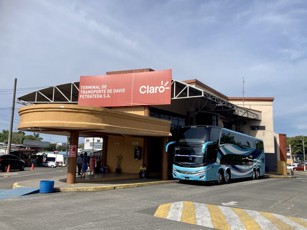 The bus left over half an hour late, but we made good time to the Panamanian border at Paso Canoas. We had already paid our departure tax on-line, and we thus got very quickly through the Costa Rican side.