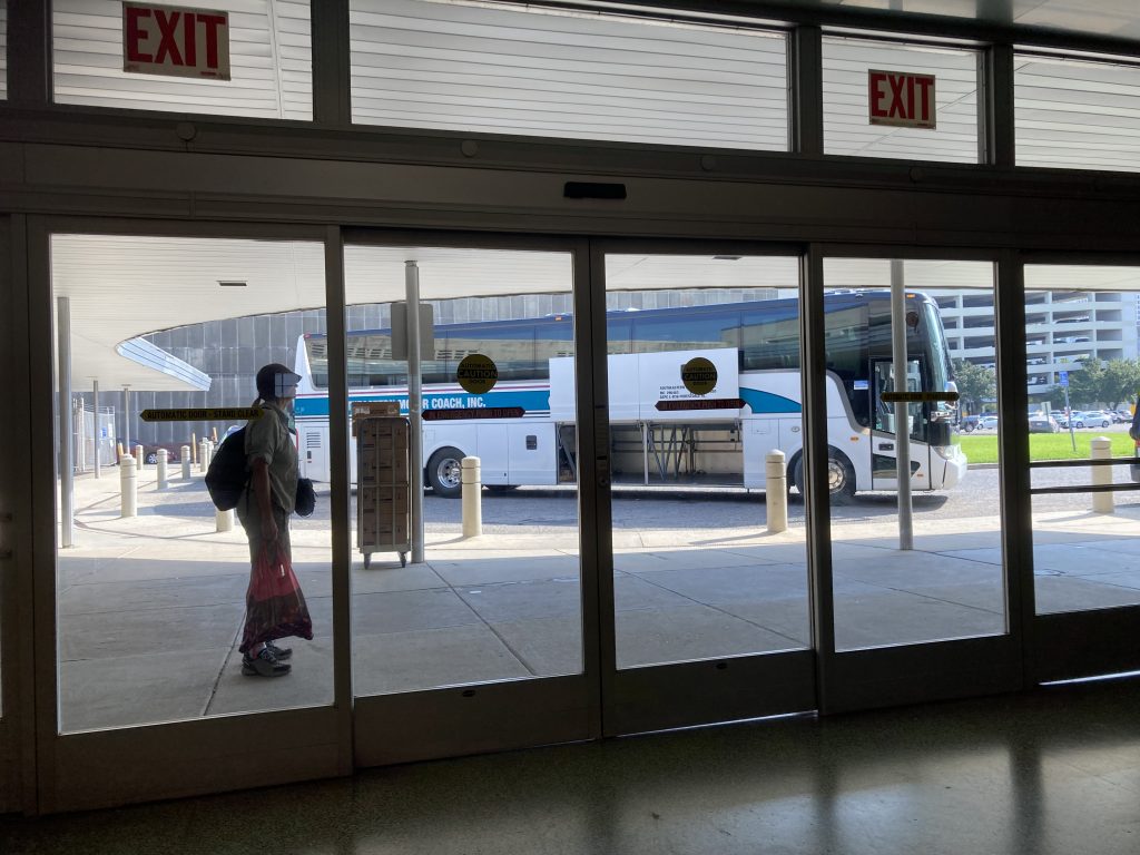 The journey to Atlanta was uneventful. We sat at the front of the bus, with the full force of air conditioning not only coming through the overhead vents, but also down the centre gangway. Not so much cold shoulder, but freezing knees… At least Peter discovered that the warmest place in the bus was in the toilet, situated in the back. However, he didn’t feel as if he could monopolise that position…