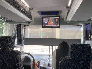The seats were comfortable, but with unavoidable views and low level sounds of the bus television. Non-stop men and women throwing balls, batting balls, piling on top of balls. Hour after hour of pundits desperately making up anything to talk about as they go a long. At least it wasn’t Fox TV.