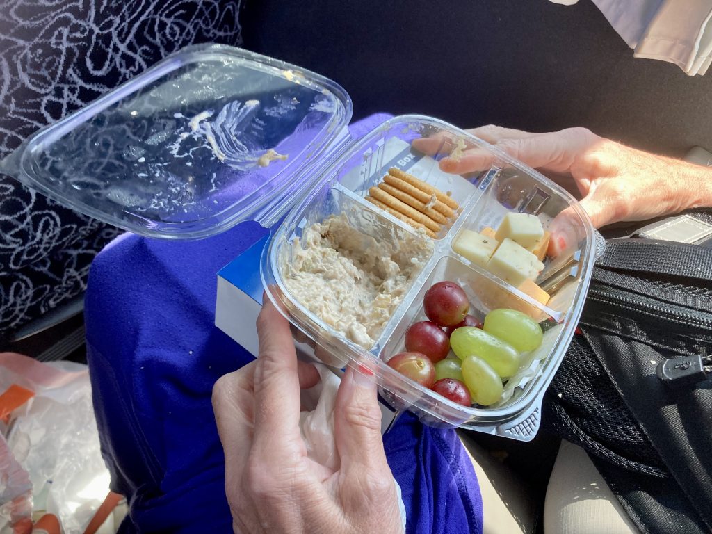 We were given a box of truly disgusting snacks, with inedible dehydrated apple bites, purporting to be the most healthy component. Similarly there was only fast food on offer at the mall where we stopped for a comfort break.