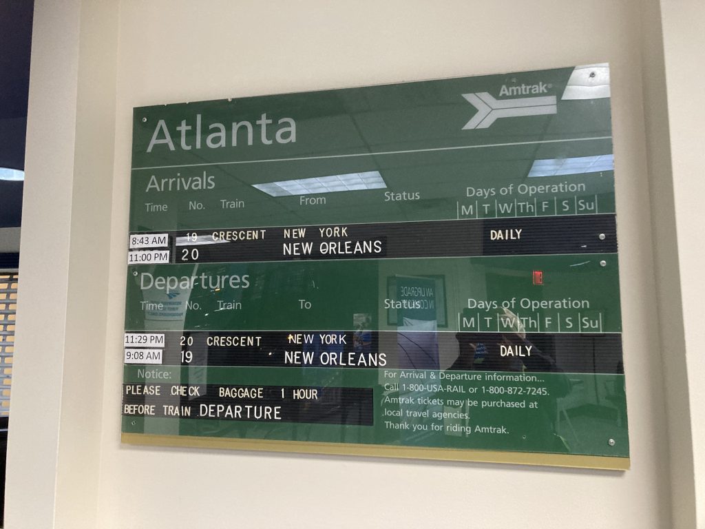 On arriving at the station in good time to check our bags and saunter out to find breakfast, we learned that we would be going by express bus to Atlanta where the train would start its journey to the North East.