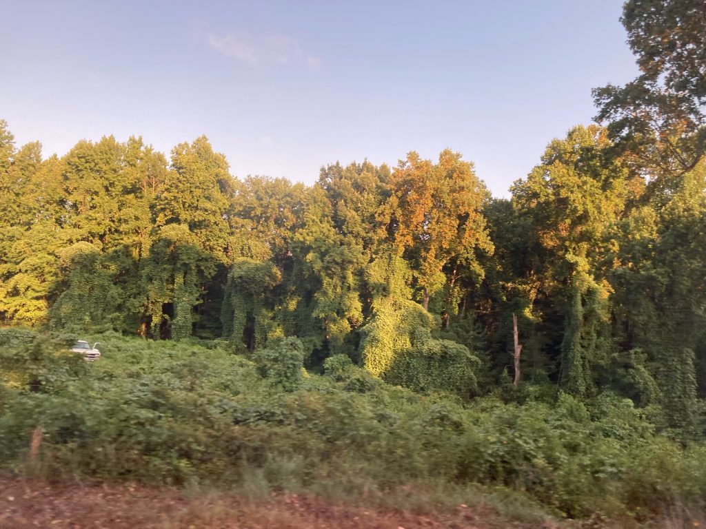 The scenery was more genteel as we journeyed Northeast, past villages and towns with grander houses than in the South. Still, as in the South, there were pervasive vines covering all forest ground plants and many tall trees.