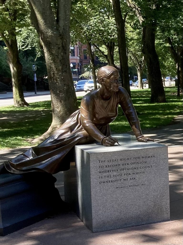 This led us to the lovely Commonwealth Avenue, a long, long narrow park, with mature trees, punctuated with statues, and lined with beautiful brown stone buildings. Genteel, is the word for it.