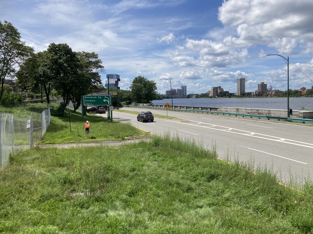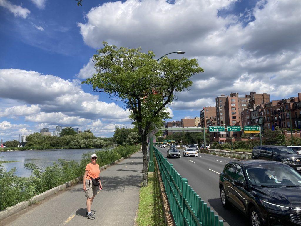 Our next destination was the Charles River Esplanade. Hmm. Tricky. Google Maps agreed, scratched its digital head and gave up. Between us and the esplanade was a seemingly endless expanse of motorways and slip-roads, with four – five lanes of roaring traffic incessantly gushing past and no pavements. How on earth do we cross this?