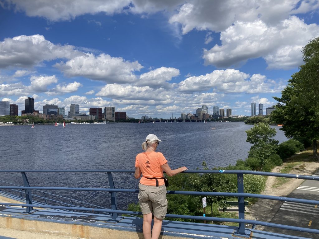 Once descended onto the esplanade, it was lovely. The Charles River was wide, with fresh breezes propelling a gathering of small sailing boats and choppy water. A delight. There were lilies in the ponds.