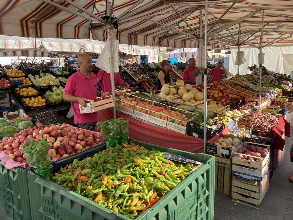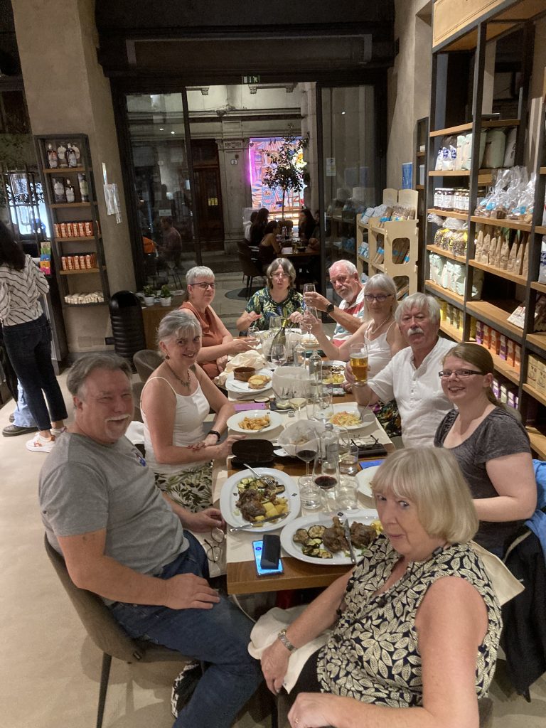 The weather was really, really hot over the weekend, but we suffered torrential rain on what was the Bank Holiday Monday in England – just to make us feel at home! That meant we could enjoy the cafés, restaurants and bars outside. Sunday morning and Monday were quiet, with many establishments closed, but there was formal dancing on Sunday evening, in the covered market.