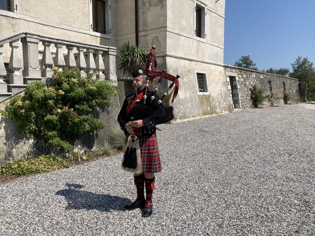 The wedding was truly magnificent, combining traditions from Scotland, Italy and Somalia. We had a splendid Scottish piper, Prosecco and canapés outside, a magnificent wedding breakfast and dancing to the wee small hours. The highlight of the ceremony was the couple’s Bichon Frisé, Louis, bringing in the rings on a pouch on his back.