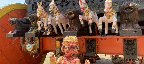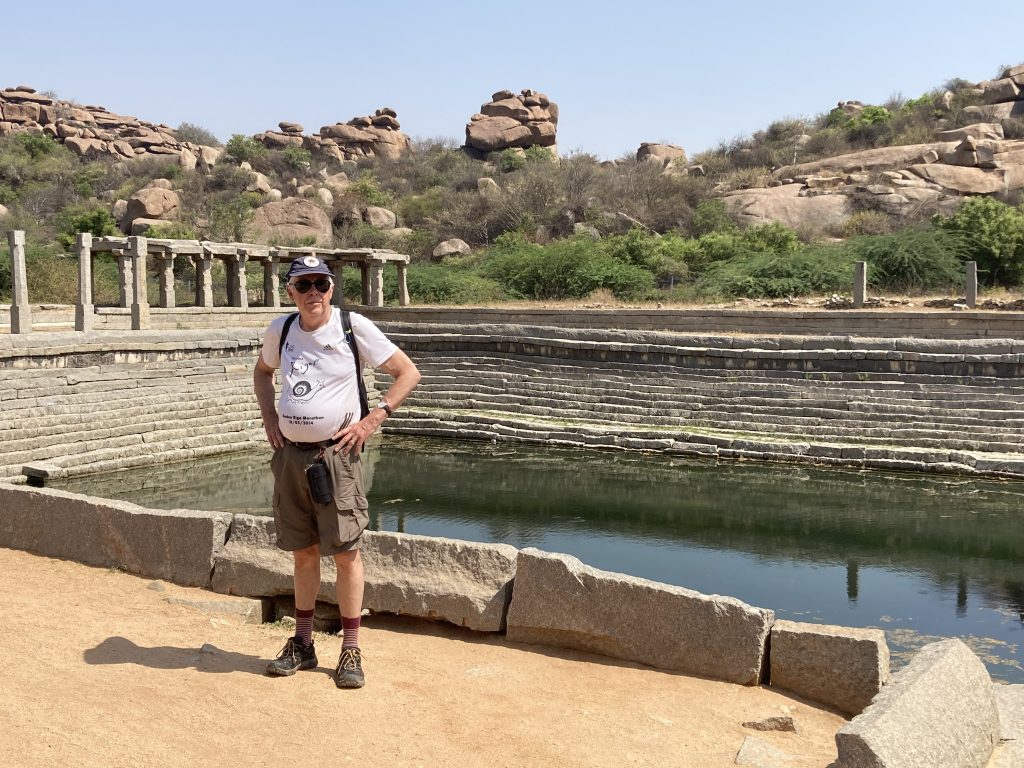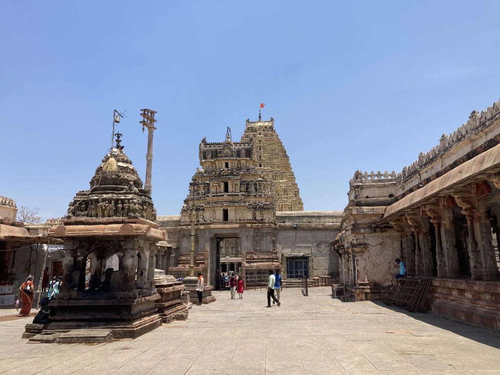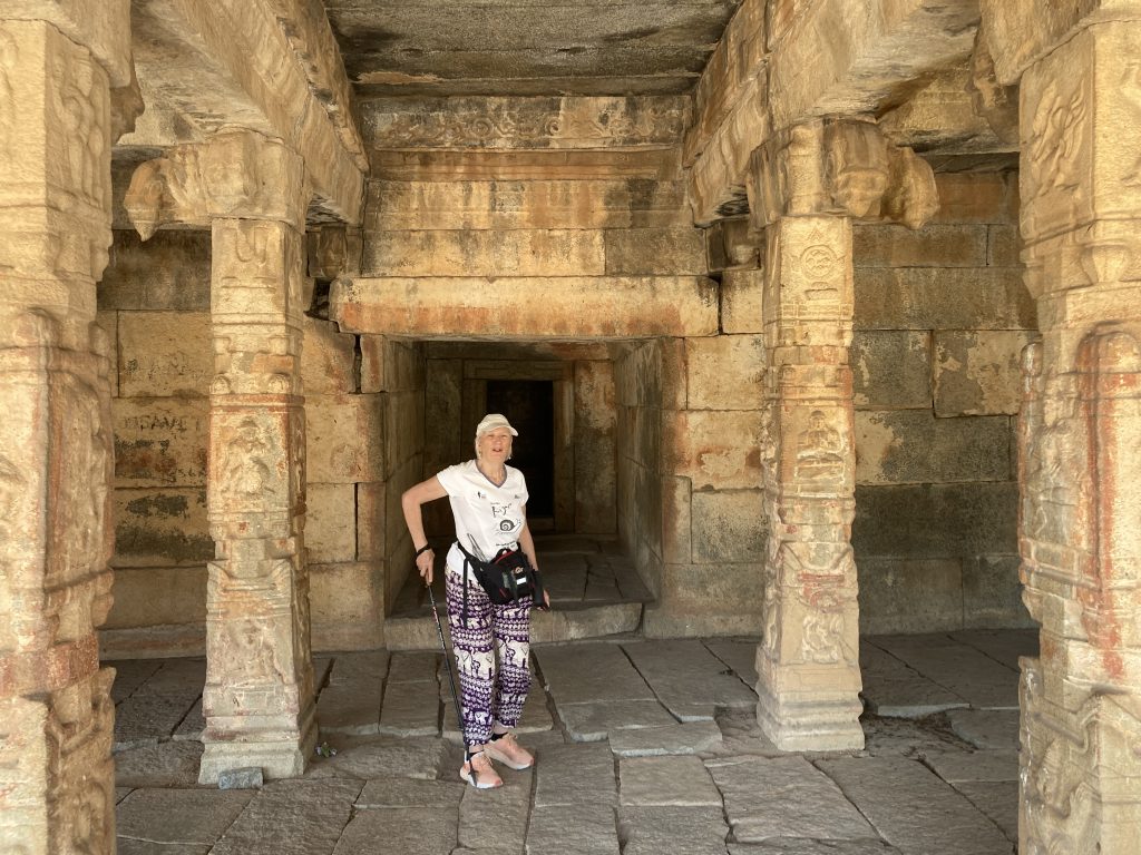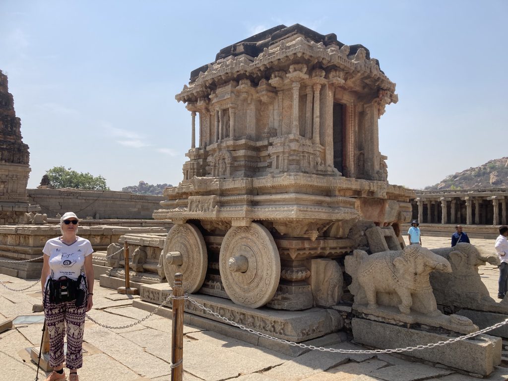 We saw many grand stone structures and carvings, amid the impressive rocky landscape. Some of the buildings required additional more recent columns to avoid the structures collapsing. We were there out of season and without the traditional garlands and music, (except for the still active Virupaksha Temple), we found it difficult to appreciate its significance and context; we did however relate to the extreme heat.