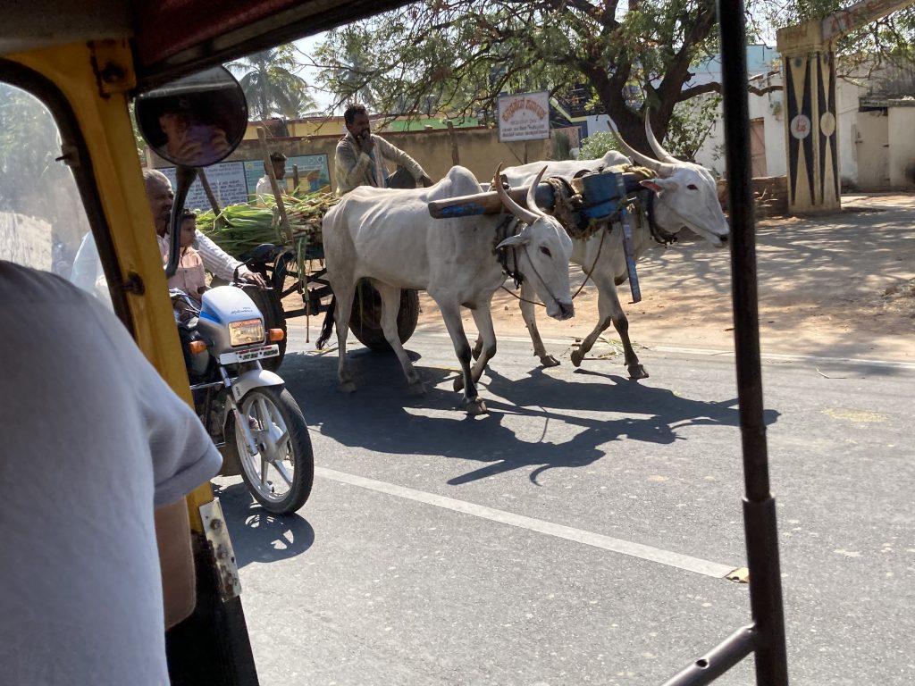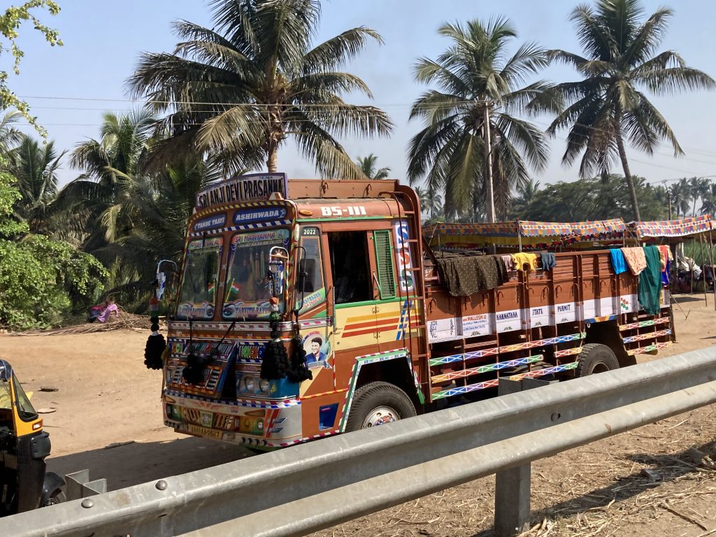 As we entered Karnataka state, the road became a concrete road; well mostly. There were unfinished stretches, where on-coming traffic competed for the least rutted bits. Often these unmade sections lasted less than a kilometre, but we came across a major road building project, which will take upwards of 5 years, ending up as a toll road. The road was being built high above the ground, with tunnels to allow animals to cross under the road. Presumably also it could withstand the monsoons, which apparently create beautiful waterfalls.