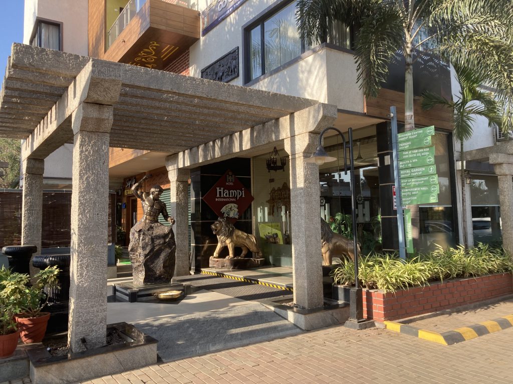We arrived in Hosapeta sooner than we expected, having made up about 20 minutes, and had to alight quite quickly. It was dark and we had to walk the gamut of hawkers and rickshaw drivers to find our way to our hotel, Hampi International, which was indeed only 60 metres from the station.