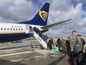 We arrived at Stansted with plenty of time to make our rucksacks flight safe – let’s hope we meet up with them again at Turin airport. We have made many trips back and forth to Stansted, but this time we have allowed ourselves more time to navigate the steps and escalators with our heavy rucksacks. No running up the escalators at Tottenham Hale and jumping onto a train this time!