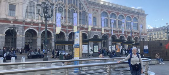 The forced change to taking a flight to Turin found us on Ryanair, landing in a nearly deserted airport, where we spent some time re-configuring our rucksacks from the air-safe state.